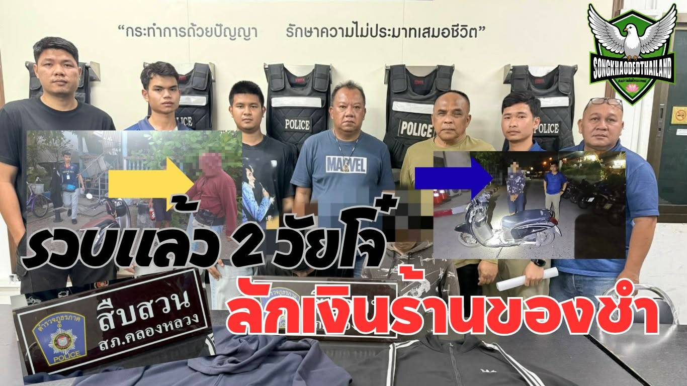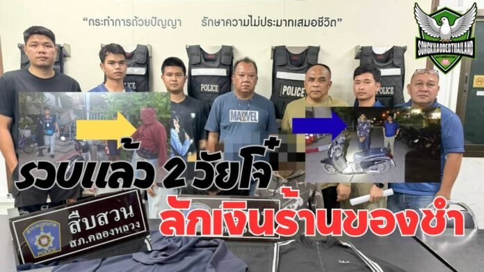 เจ้าหน้าที่ตำรวจ สภ.คลองหลวง จับกุมวัยรุ่น 2 ราย ก่อเหตุลักทรัพย์ภายในร้านขายของชำ หลังอาศัยจังหวะเจ้าของร้านเผลอหลับ กวาดเงินสดและลอตเตอรี่หลบหนี
